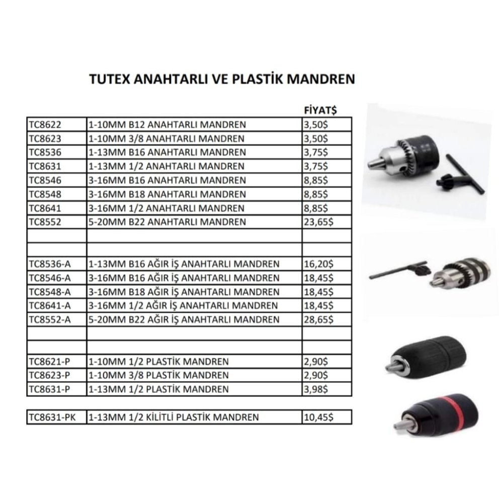 TUTEX ANAHTARLI AĞIR İŞ MANDREN,